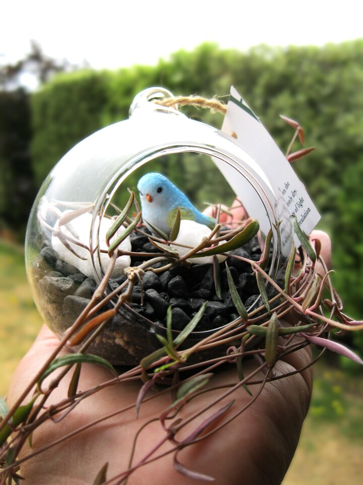 2. Watering Tips: Succulents don’t need a lot of water. During the summer, water your plants every two weeks, using just a tablespoon of water per succulent. In the cooler months, you can reduce watering to once every 4 to 6 weeks. Always make sure the terrarium has dried out between waterings to keep your plants healthy.
