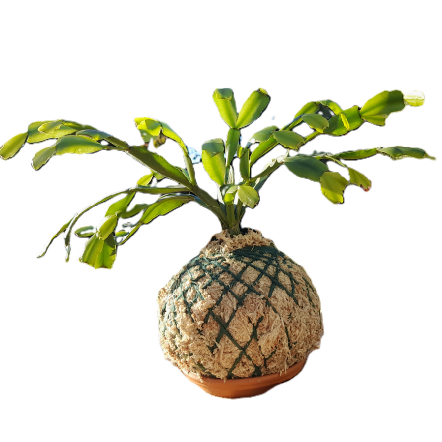 Christmas Cactus kokedamas is approximately 12 - 15cm in diameter across the moss ball.